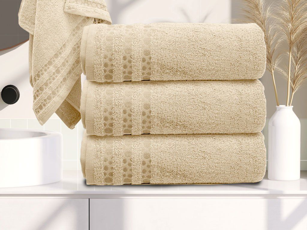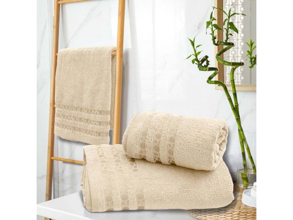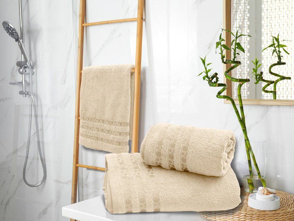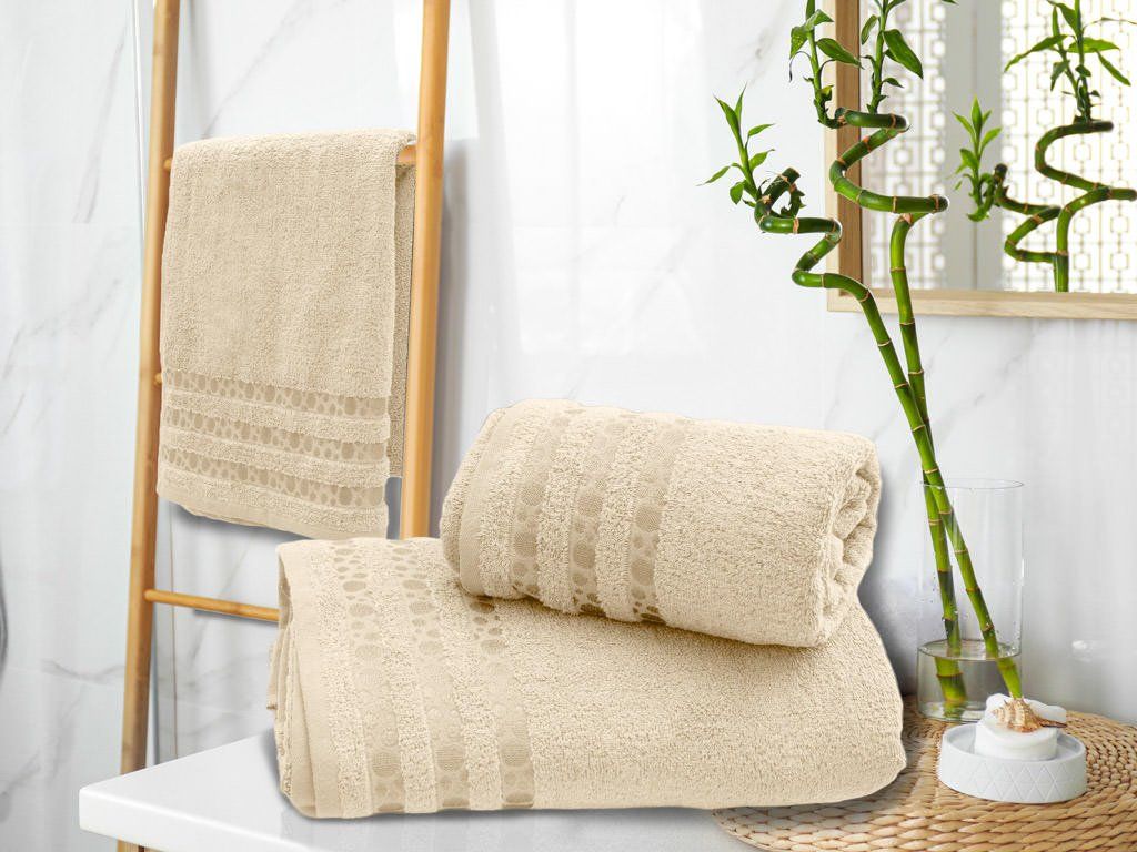 Prosop de baie din bambus DOTS crem