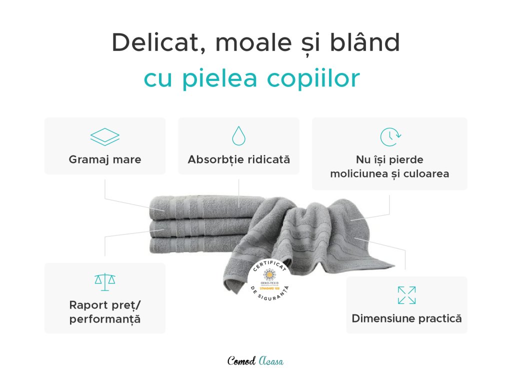 Prosop pentru copii LINEA 30x50 cm gri, 100% bumbac