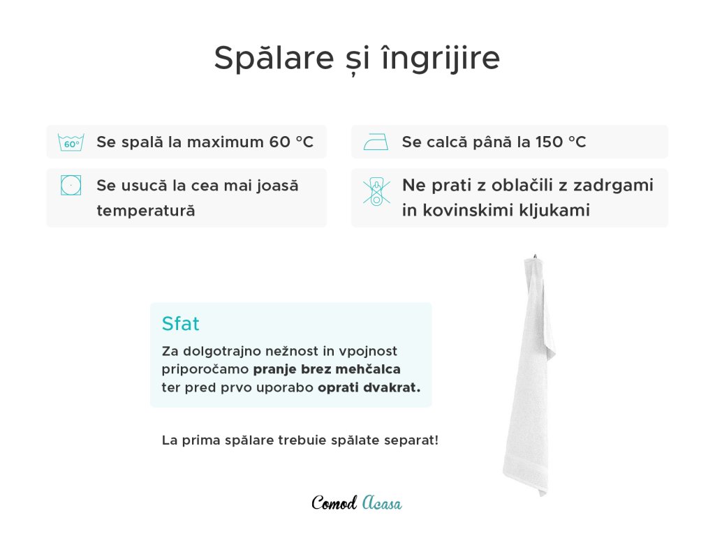 - Spălare max la 60 °C, călcare până la 150 °C