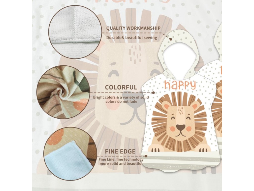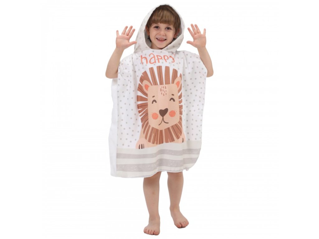 Poncho pentru copii HAPPY LION alb 60 x 60 cm