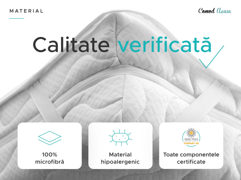 Ați putea crede că singura persoană cu care împărțiți patul este partenerul dumneavoastră sau prietenul canin. Dar vă înșelați. Din păcate, există încă mici acarieni obraznici care dorm cu noi. În pat, ei au parte de climatul perfect pentru viața lor. Acarienii adoră căldura și umiditatea așternuturilor și a saltelelor. Tot ce au nevoie pentru viață este întunericul, umiditatea și o temperatură de aproximativ 24°C. Toate aceste condiții sunt asigurate în fiecare noapte, când transpirăm până la un litru de transpirație și pierdem aproximativ 1,5 g de celule moarte. Chiar dacă salteaua arată ca nouă și îndeplinește toate cerințele dumneavoastră, este mult mai rău din punct de vedere al igienei. Pe parcursul mai multor ani de utilizare a saltelei, se acumulează acarienii și excrementele acestora. Acest factor poate duce la apariția astmului, alergiilor sau a eczemelor atopice. Este important să protejați salteaua pentru a-i prelungi durata de viață și a crește igiena patului. O soluție excelentă este utilizarea unei protecții pentru saltea. Protecția impermeabilă pentru saltea poate fi spălată la 60 °C, ceea ce ucide acarienii. Chiar și câteva ore în lumina directă a soarelui sau la temperaturi scăzute sunt fatale pentru aceștia. Protecția poate fi aerisită în mod regulat iarna și vara, expusă la temperaturi ridicate și scăzute.