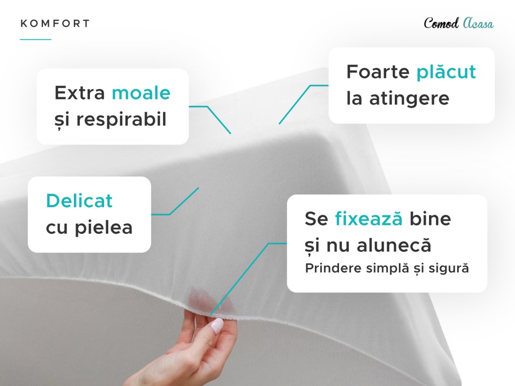 - Se prinde ușor de saltelele pentru copii sau clasice, trebuie doar întinsă ușor și prinsă sub saltea