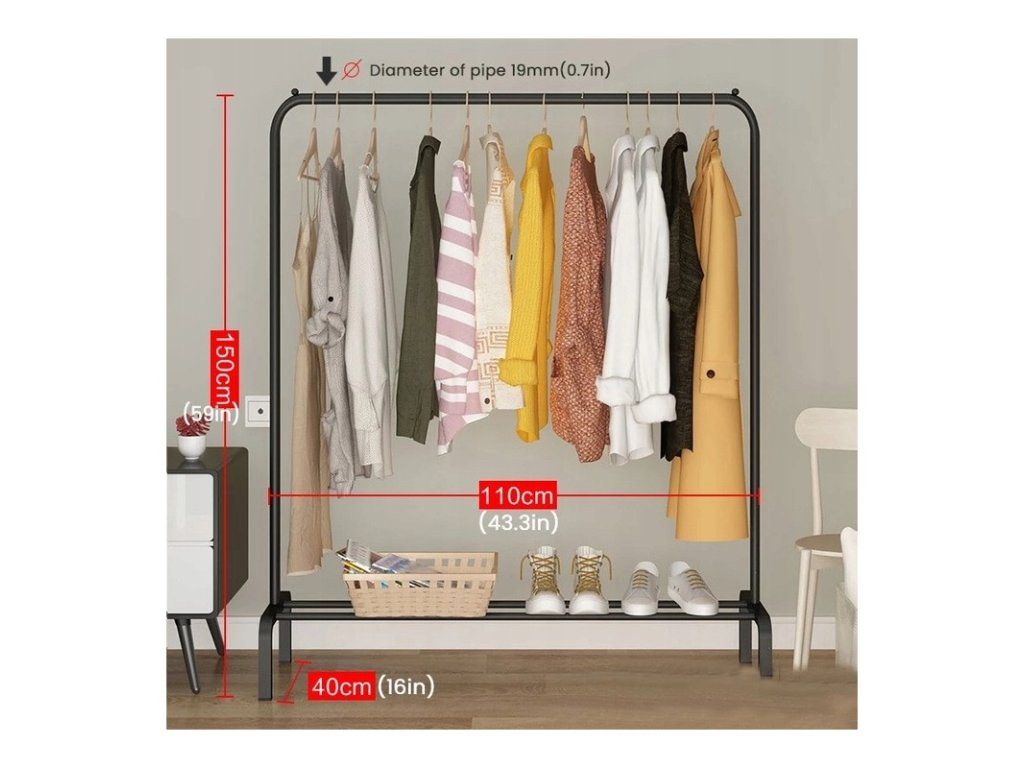 Suport pentru haine RAXIO 150x110x40 cm, negru