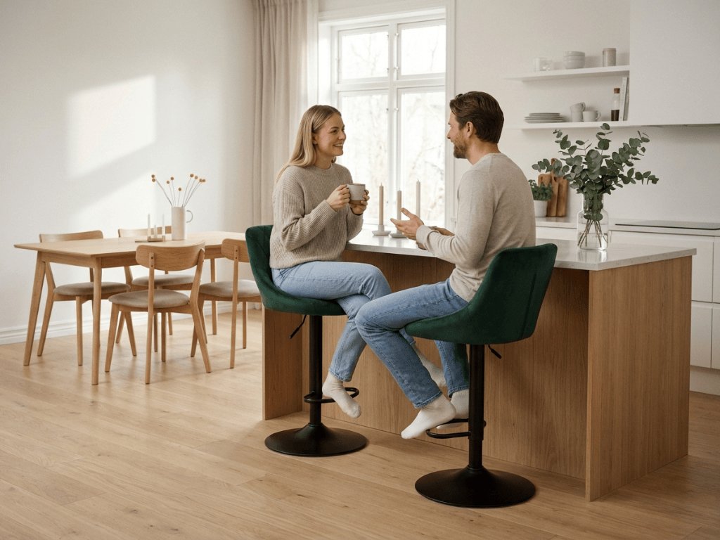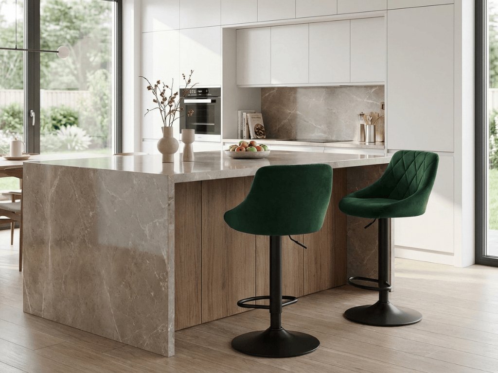 Scaun de bar verde KAST VELVET cu picior negru