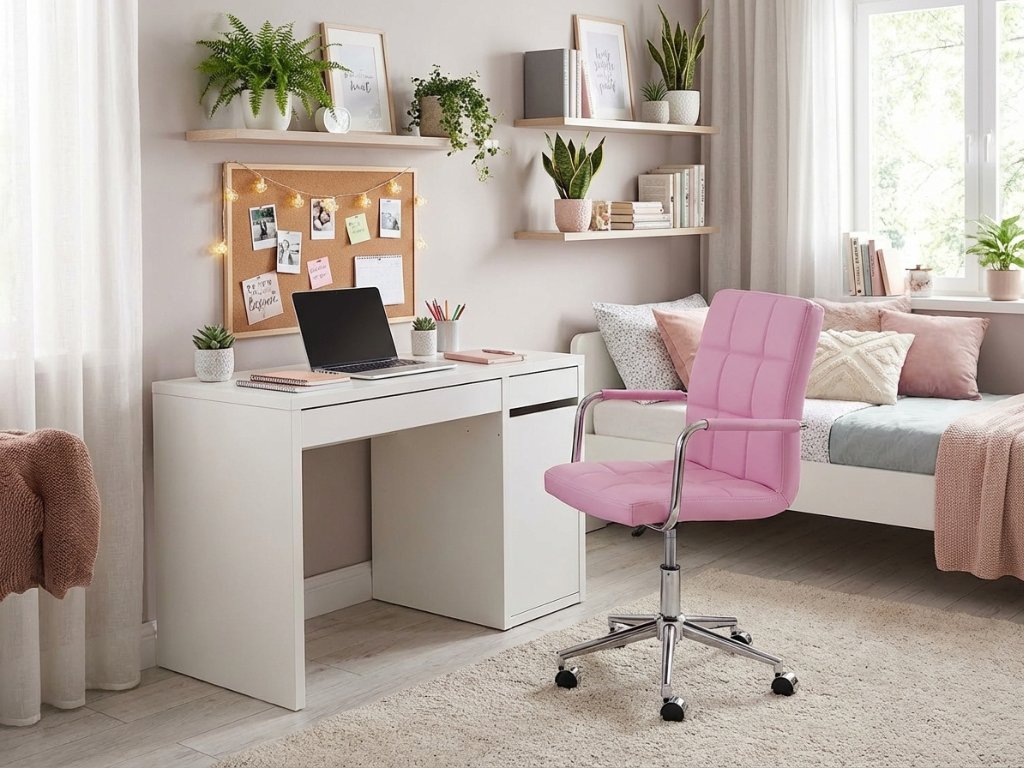 Răsfățați-vă cu confortul care vă va însoți în fiecare zi de muncă. Scaunul de birou modern în nuanța elegantă de roz este completarea ideală pentru biroul de acasă, camera studentului sau colțul de lucru. Datorită înălțimii ajustabile a șezutului și specificațiilor ergonomice, vă oferă confort maxim la ședințe îndelungate. Designul stilat va înviora cu ușurință orice interior și îi va conferi o notă personală. Lăsați-vă inspirat de practicitate și estetică într-un singur loc – activitățile zilnice merită cel mai bun mediu.