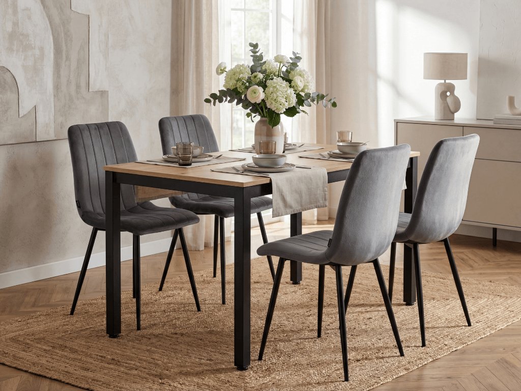 Un stil care combină forme simple și funcționalitate înaltă. Mizează pe accesorii discrete, o paletă de culori delicate și materiale naturale. Accesoriile ideale pentru o sufragerie scandinavă sunt plantele veșnic verzi, napronuri colorate și lămpi mari din metal. Interioarele scandinave nu pot fi fără ferestre mari și iluminat care garantează lumină chiar și în timpul zilelor scurte. Scaunul de masă tapițat Lava se potrivește perfect într-o sufragerie inspirată de țările scandinave. Cusăturile simple și picioarele negre se potrivesc cu o masă cu elemente metalice. Diferitele culori ale scaunelor la o singură masă arată excelent. Nu te teme de schimbare.
