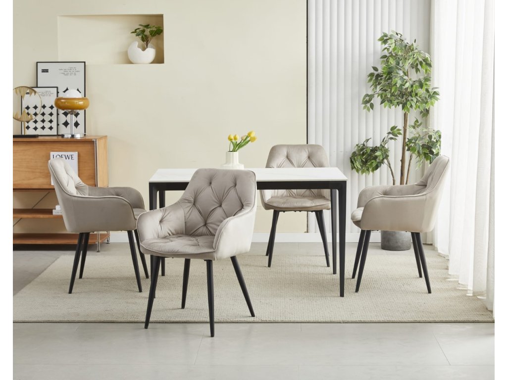 Fotoliu de sufragerie JORK VELVET în culoare bej delicat este alegerea ideală pentru cei care caută o combinație de confort, eleganță și design atemporal. Tapiseria de catifea cu cusături discrete este de bun gust și, în același timp, adaugă un plus de căldură întregului spațiu. Picioarele negre din metal oferă fotoliului stabilitate și un aspect modern.