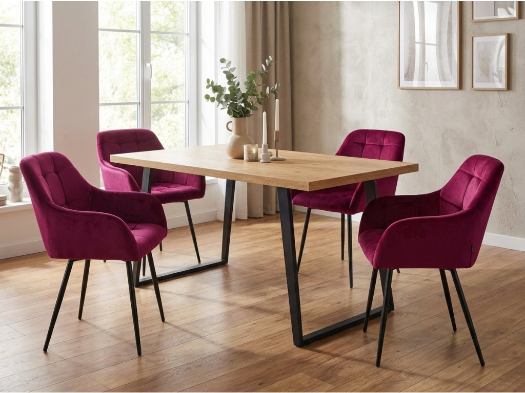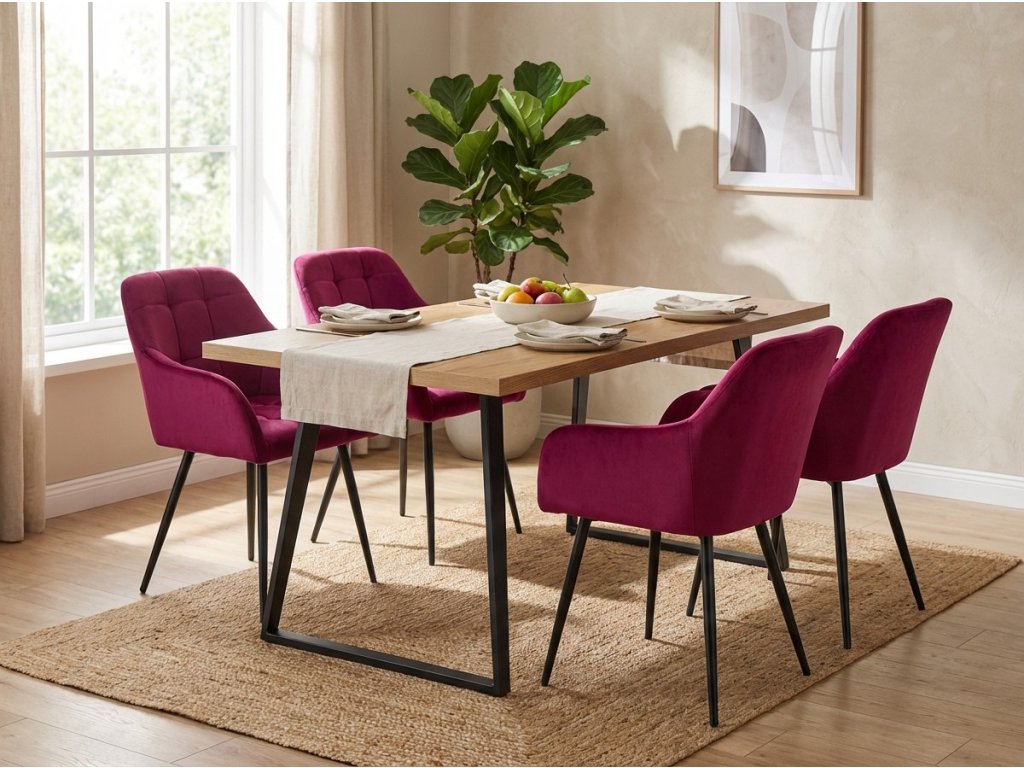 Scaun de masa roz inchis LOREN VELVET cu picioare negre