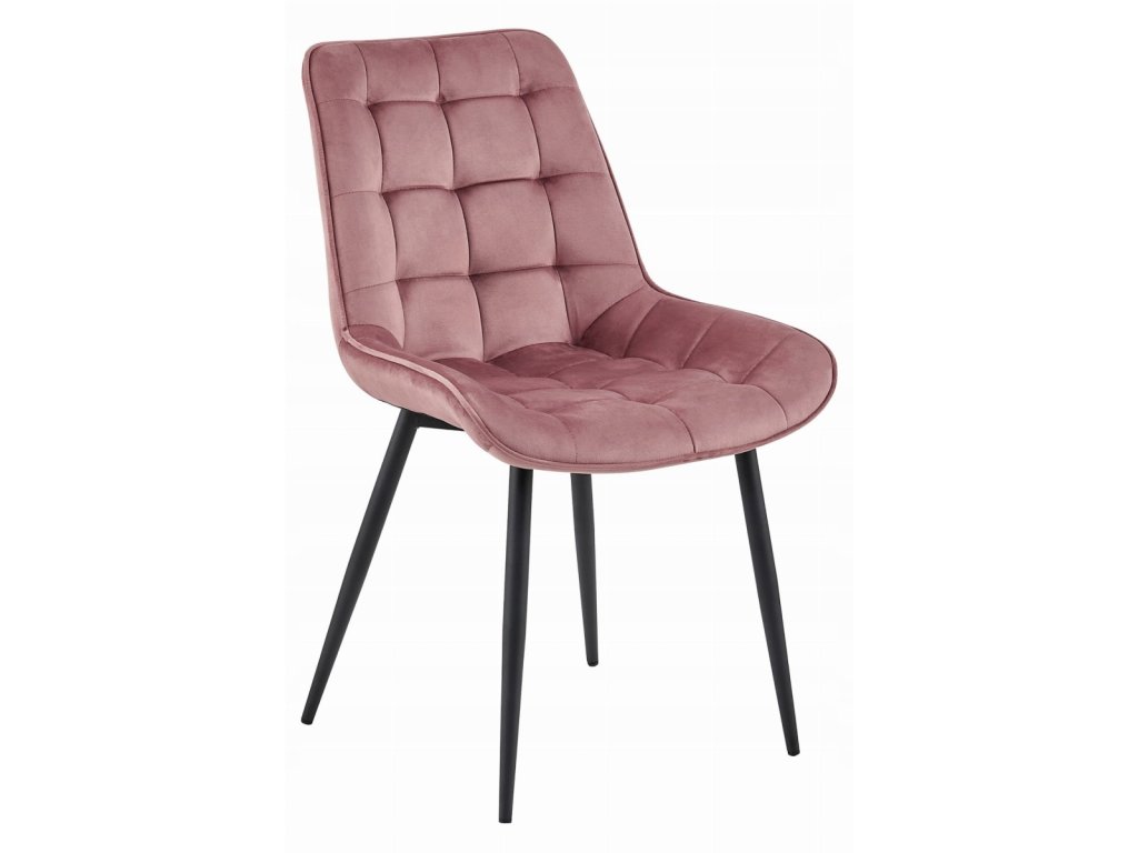 Scaun din catifea BERA roz inchis cu picioare negre