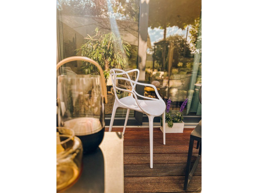 - Plasticul nu este stabil UV – recomandăm protejarea scaunului de razele directe ale soarelui