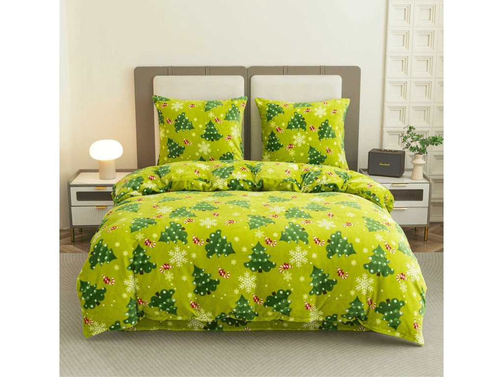 Set 2 buc Lenjerie cocolino CHRISTMAS TREE verde + cearsaf Cocolino microplus cu elastic SOFT 180x200 cm alb, pat dublu