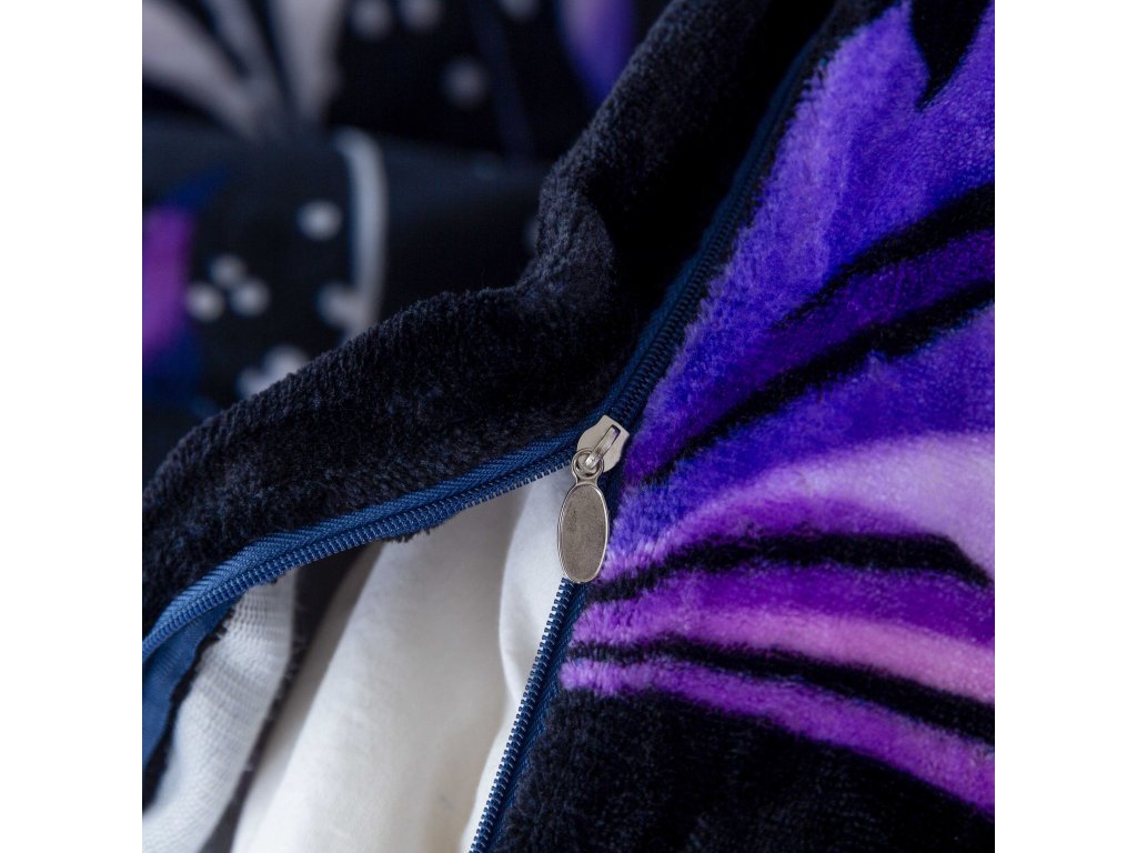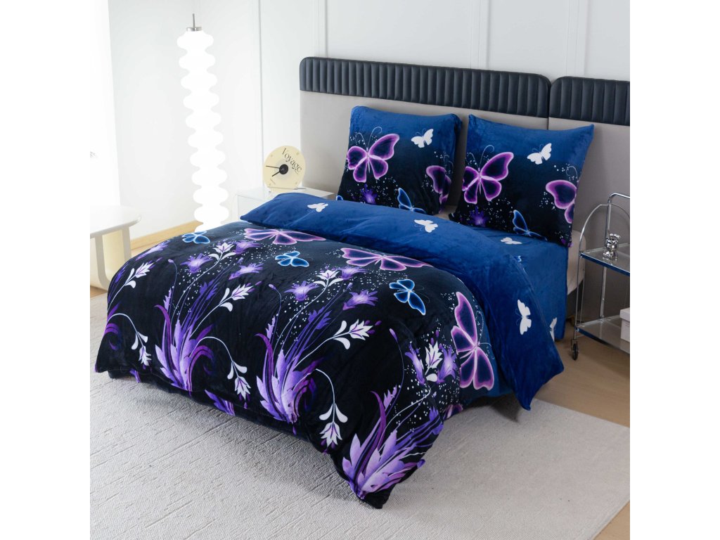 Set Lenjerie cocolino VIOLET BUTTERFLY albastru inchis + Cearsaf Cocolino microplus cu elastic SOFT 90x200 cm alb, pat de o persoana