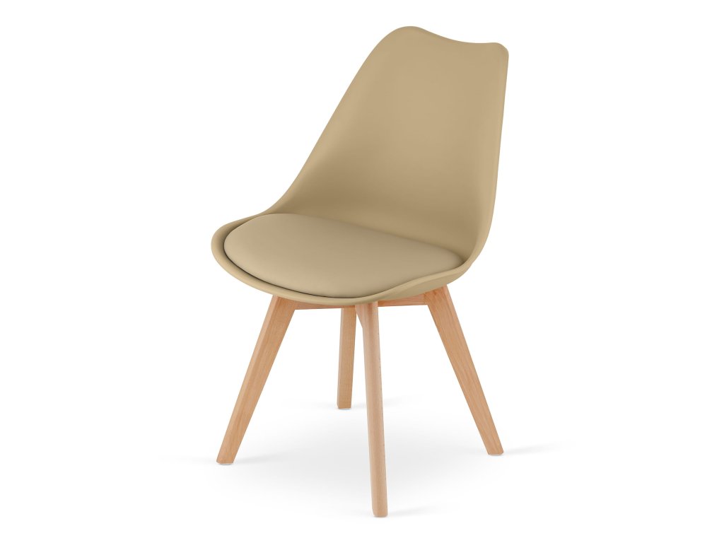 Set de dining 1 + 4, masa alba TESSA 120x60 cm decor stejar + scaun bej BALI MARK cu picioare din fag