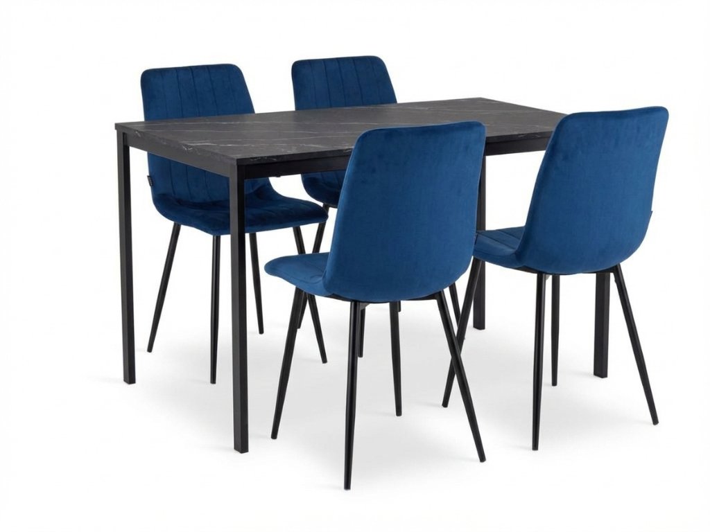 Set de dining 1 + 4, masa neagra RAMOD 100x60 cm + scaun albastru LAVA cu picioare negre