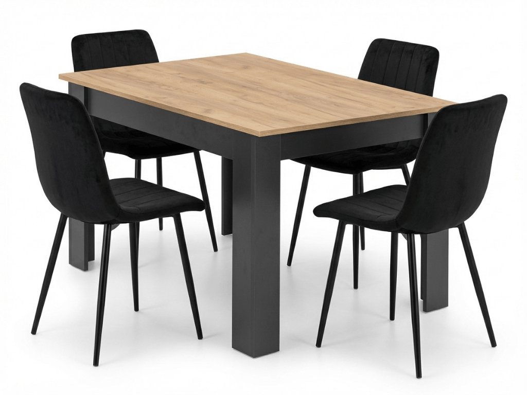 Set de masa 1 + 4, masa MADO 120x80 cm negru/dub artisan + scaun catifelat negru LAVA cu picioare negre